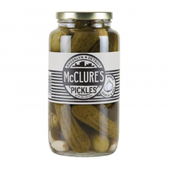 Pickles made by 4th generation picklers from Detroit, MI, USA. This recipe handed down from the McClure's great-grandmothers for you to enjoy straight from the jar. McClure's garlic dills have a strong sour taste complimented by notes of garlic and dill. During the summer months you will notice flowering dill in our jars, which, due to the pollen on the flowers, adds a fennel-like subtleties.
